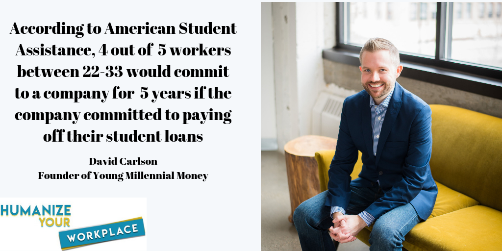 On this week’s episode of Humanize Your Workplace, we’re joined David Carlson. David is the Founder of Young Adult Money and the Author of Student Loan Solutions. We chat about: